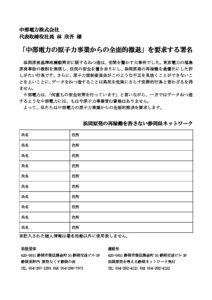 「中部電力の原子力事業からの全面的撤退」を要求する署名