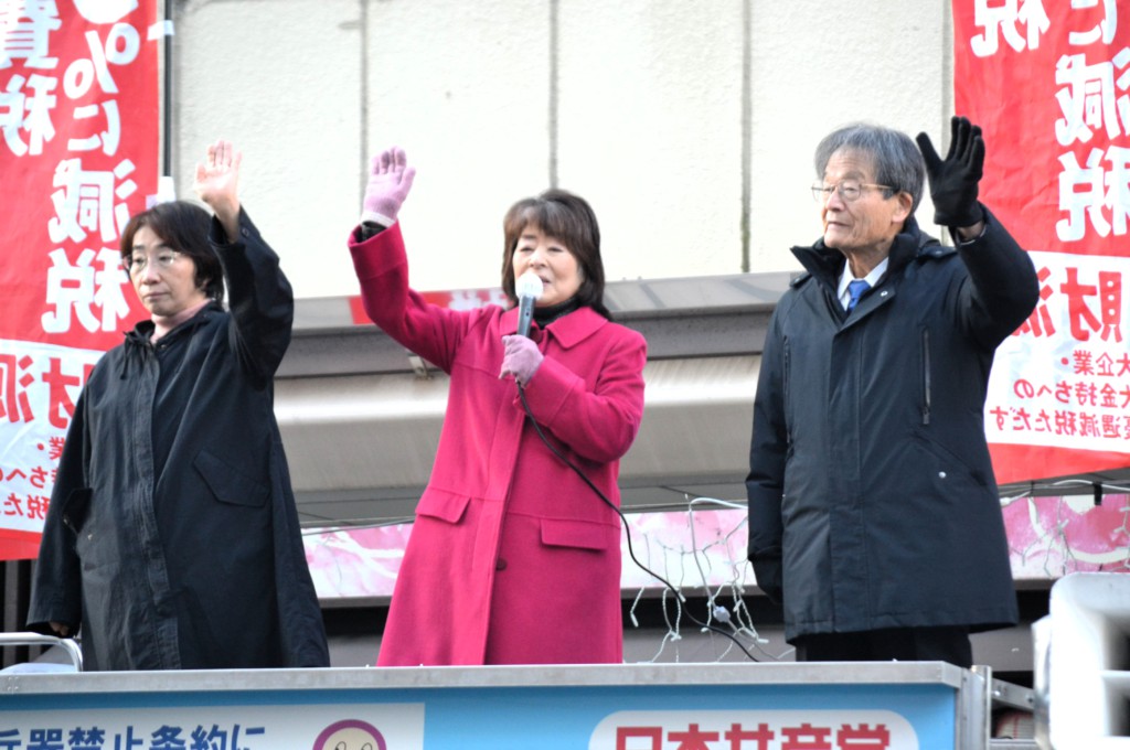また、「台湾有事」の際は自衛隊が武力を行使する存立危機事態にあたるとした高市首相発言が中国との間に緊張関係を生んでいることを批判。撤回を求めるとともに、「平和でも暮らしでも、みなさんの願いと真逆のことをおこなっている政治をおおもとから変えるために力をあわせましょう」とのべ、日本共産党への支援を訴えました。